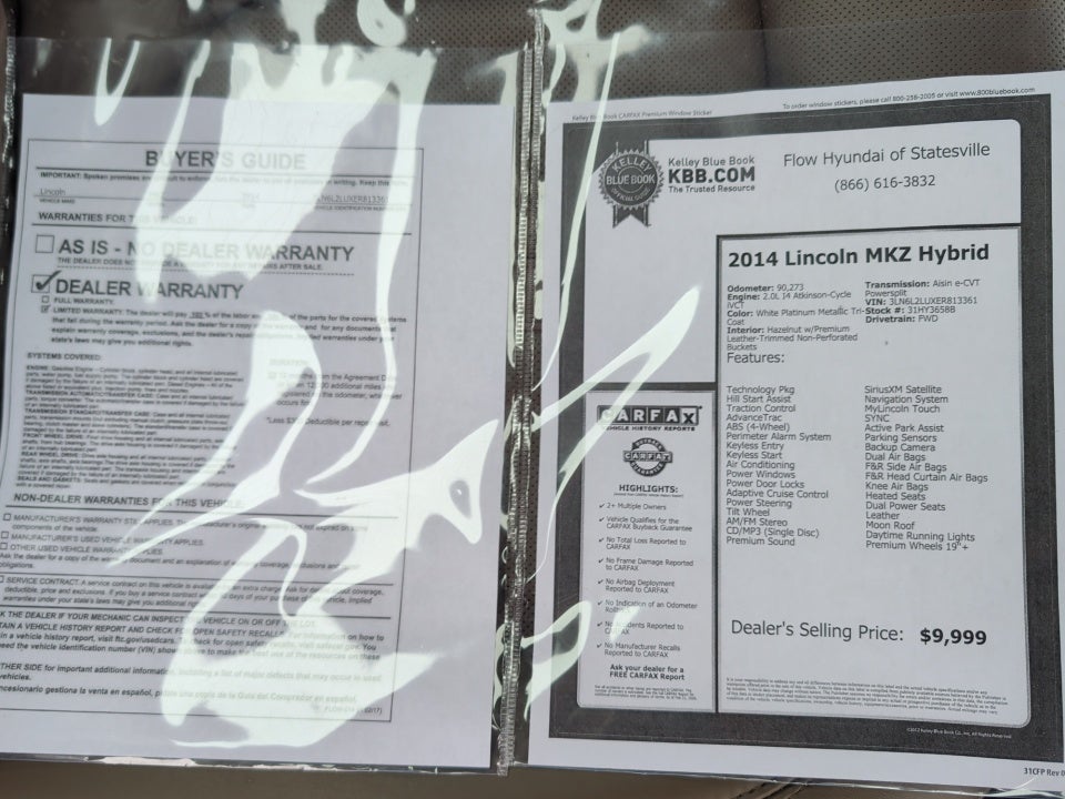 FLOW CERTIFIED! 12 MONTHS/12000 MILE WARRANTY 3 day money back guarantee and a free maintenance package on this 2014 Lincoln MKZ White Platinum Metallic Tri-Coat Hybrid! **