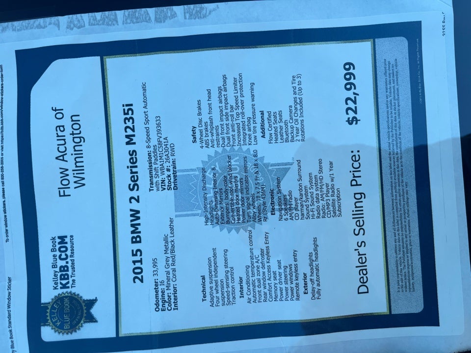 Flow Acura of Wilmington is pleased to offer this beautiful 2015 BMW 2 Series Mineral Grey Metallic M235i with the following features:
