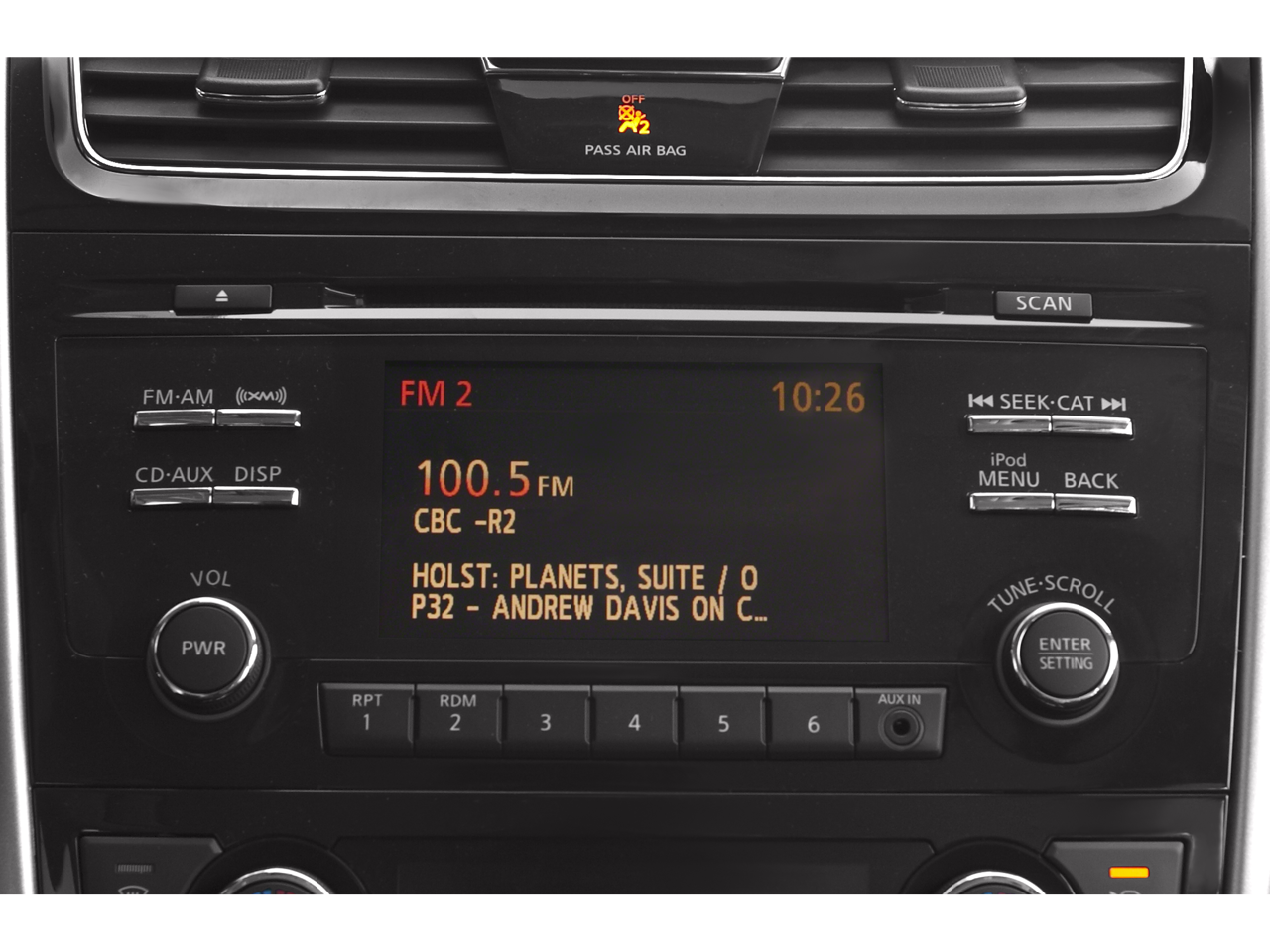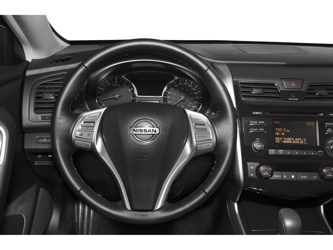 • Radio: AM/FM/CD/MP3 Audio System w/SiriusXM -inc: Radio Data System (RDS), aux-in, 6 speakers, streaming audio via Bluetooth® wireless technology, steering wheel-mounted audio controls, 5" color audio display, rearview monitor, USB port, hands-free text messaging assistant, NissanConnect Smartphone Apps, diversity antenna and Speed Sensitive Volume (SSV)