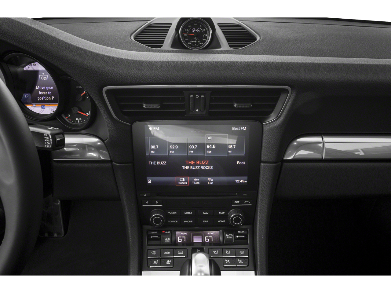- Radio: Porsche Communication Management (PCM) -inc: CD/DVD drive, 11 GB internal jukebox storage, 2 USB slots, 2 SD card slots, Bluetooth® hands-free mobile phone connection using Hands Free Profile (HFP), Porsche Car Connect (including Carfinder, remote vehicle status, remote services, and Porsche Vehicle Tracking System (PVTS)), Connect Plus module featuring online navigation, mobile phone preparation, audio interface, Apple CarPlay, wireless internet access, SiriusXM satellite radio w/3-month trial, HD Radio receiver, Sound Package Plus sound system featuring 8 Speakers, 150 Watt output and universal audio interface (AUX-IN, USB, iPod)
