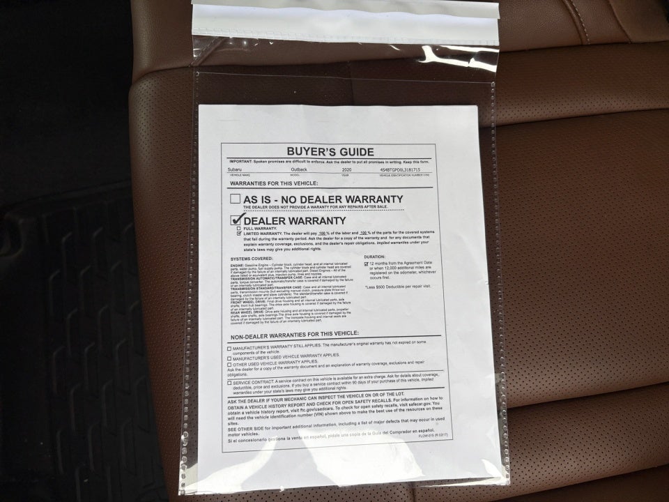 - Vehicle Name: Subaru Outback