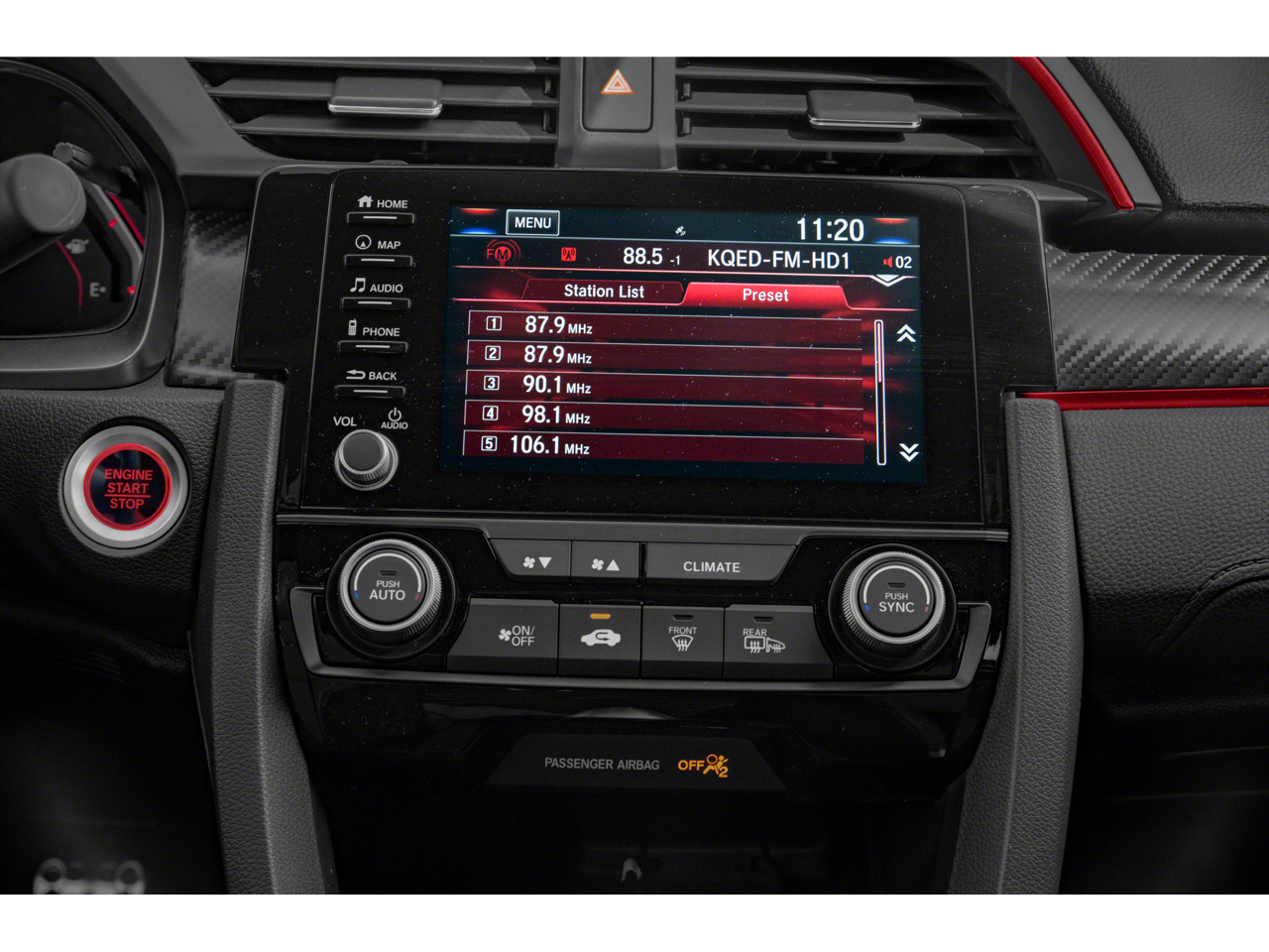 - Radio: 540-Watt AM/FM/HD/SiriusXM Premium Audio -inc: 12 speakers w/subwoofer, 7" display audio w/high-resolution electrostatic touch-screen and customizable feature settings, Honda Satellite-Linked Navigation System (only available in the United States except Alaska) w/voice recognition and Honda HD digital traffic, HondaLink, Apple CarPlay integration, Android Auto integration, 1.0-amp USB audio interface port in center console, 1.5-amp USB smartphone/audio interface port in front console, Bluetooth® HandsFreeLink and streaming audio, SMS text message function, Radio Data System (RDS) and Speed-Sensitive Volume Control (SVC), SiriusXM requires a subscription after any trial period, If you decide to continue your SiriusXM service at the end of your trial subscription, the plan you choose will automatically renew and bill at then-current rates until you call SiriusXM at 1-866-635-2349 to cancel, See our customer agreement for complete terms at www.siriusxm.com, Fees and programming subject to change, Available in the 48 contiguous United States and D.C, SiriusXM and all related marks and logos are trademarks of SiriusXM Radio Inc
