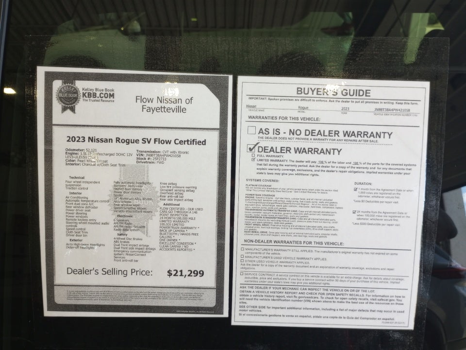 All of our Pre-Owned vehicles go through a QRP(Quality Renewal Process). Our customers tell us that we have the most professional trustworthy & courteous staff they've ever experienced at a car dealership. Please come check out Flow Nissan of Fayetteville's Easy Transparent Fun No Haggle No Pressure shopping experience. Don't hesitate to contact us at www.flownissanfayetteville.com or simply by calling 910-323-4400 to set up your VIP test drive. Thank you for allowing us to serve your automotive needs over the past 50+ years.