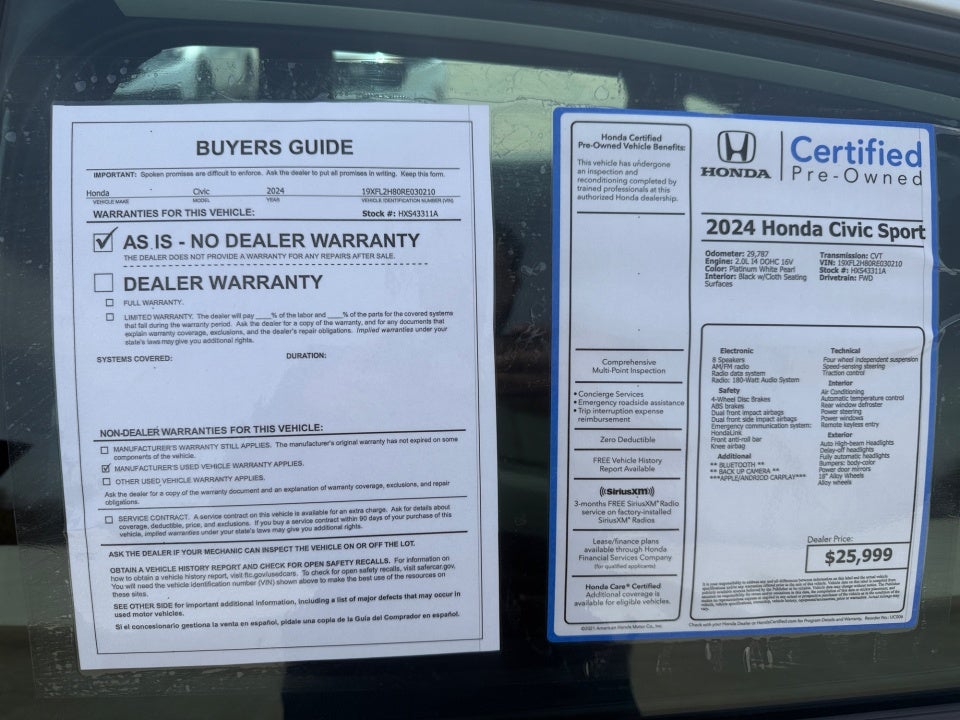 2024 Honda Civic Hatchback Sport