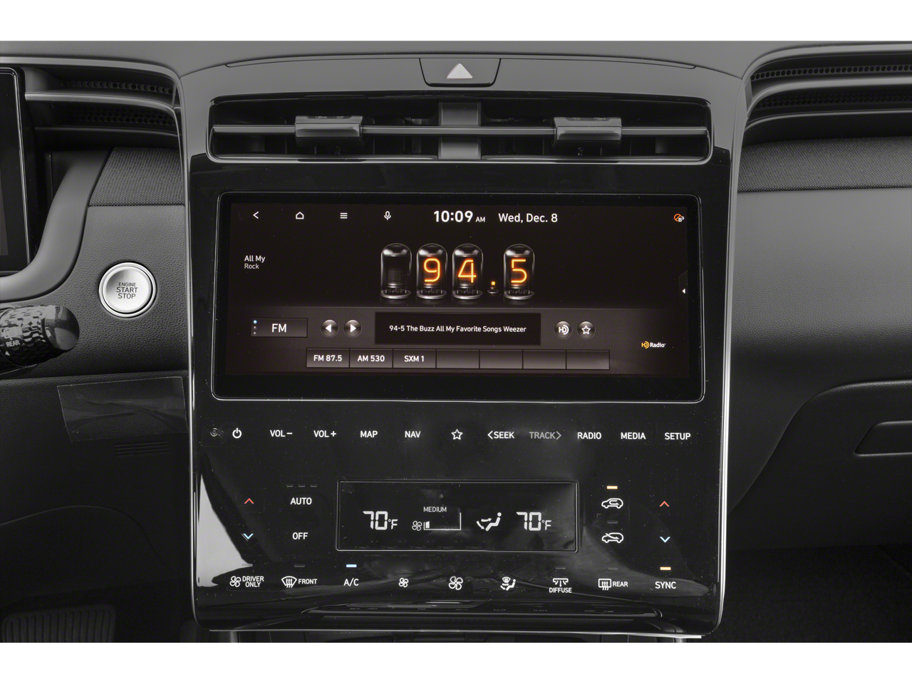 - Radio: Bose Premium w/AM/FM/HD Audio System -inc: 10.25" color touchscreen w/onboard navigation and traffic flow including incident data via HD Radio (HERE), digital 8-channel amp (w/custom equalization, digital signal processing, and dynamic speed compensation) and 8 speakers (1 twiddler on center of instrument panel, 2 tweeters, 2 front door, 2 rear door, 1 woofer on rear quarter panel), SiriusXM satellite radio (3-month trial subscription), BlueLink+ connected car, Apple CarPlay and Android Auto integration, Dynamic Voice Recognition, map and multimedia software OTA update capability and USB connectivity