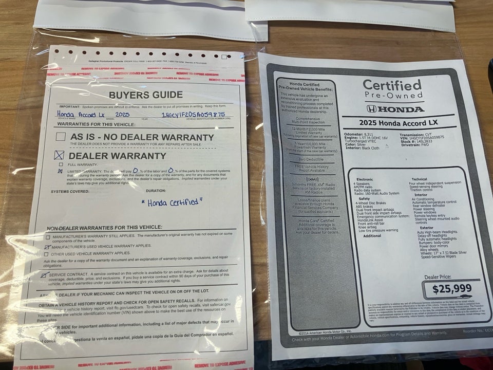 2025 Honda Accord LX Honda Certified