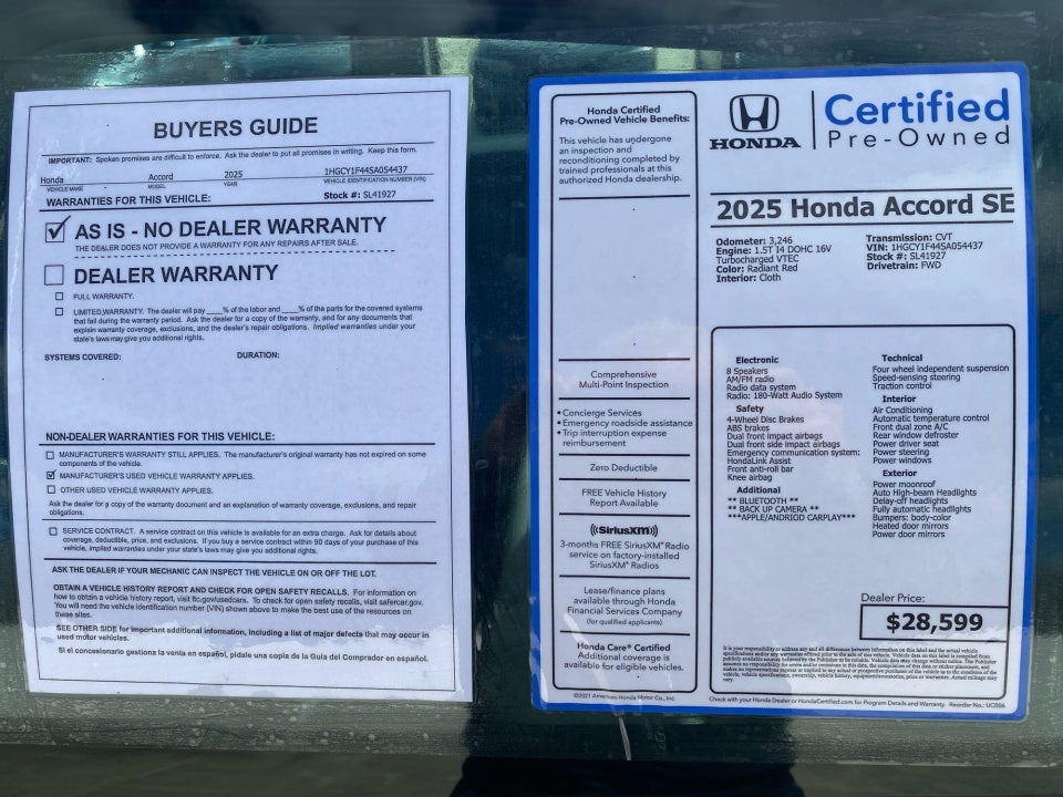 Flow Honda is very proud to offer this handsome-looking 2025 Honda Accord Radiant Red Metallic SE with the following features: