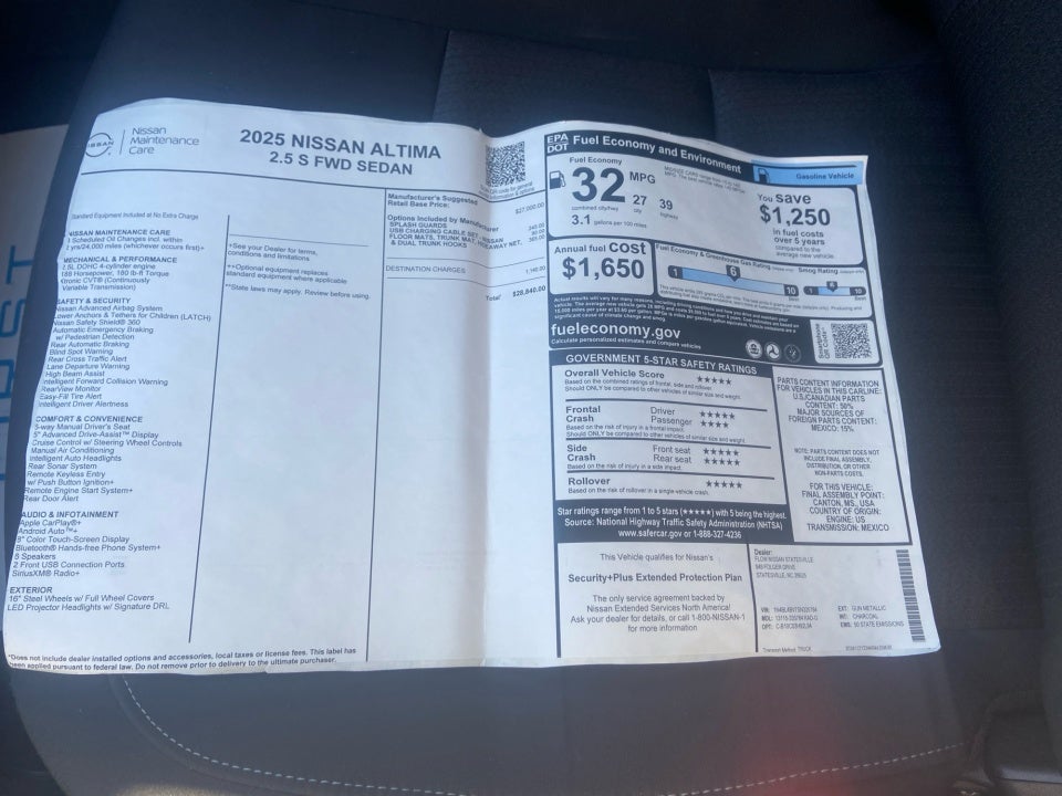 Flow Nissan of Statesville is honored to offer this good-looking 2025 Nissan Altima Gun Metallic 2.5 S with the following features: