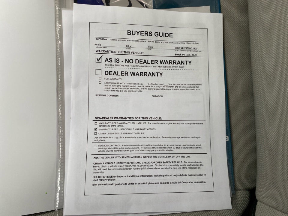 - Vehicle Name: Honda CR-V