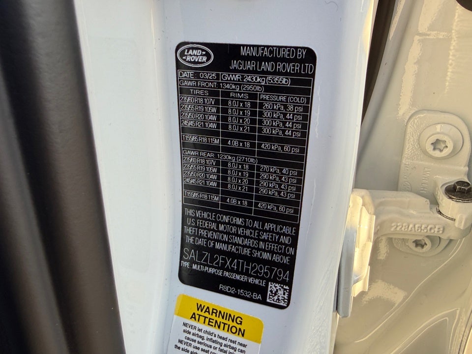 12 Speakers, Adaptive Dynamics, AM/FM radio: SiriusXM, Apple CarPlay & Android Auto, Black Brake Callipers, Black Exterior Pack, Clearsight Interior Rear View Mirror, Cold Climate Package, Configurable Dynamics, Delay-off headlights, Dynamic Handling Package, Electronic Stability Control, Exterior Parking Camera Rear, Front reading lights, Head-Up Display, Headlight Power Wash, Heated Rear Seats, Heated Washer Jets, Heated Windscreen, Illuminated entry, Navigation system: InControl Navigation Pro, Power Liftgate, Power moonroof, Radio: Meridian Sound System, Rain sensing wipers, Rear fog lights, Remote keyless entry, Security system, Speed control, Steering wheel mounted audio controls, Technology Package.Flow Jaguar Landrover of Greensboro is pumped up to offer this beautiful 2026 Land Rover Range Rover Evoque Fuji White Dynamic with the following features:Certified. Land Rover Approved Certified Pre-Owned Details:* Warranty Deductible: $0* 165 Point Inspection* Roadside Assistance* Transferable Warranty* Up to 1-year/Unlimited Miles or 2-year/100,000 Miles (whichever occurs first) Vehicle must have minimum one year of coverage at point of sale* Vehicle History** All of our cars go through a comprehensive QRP Quality Renewal Process. Come check out Flow Jaguar Landrover of Greensboro's No haggle, No Pressure, Transparent, Easy, Fun, car shopping experience!! We have the most professional and courteous sales staff in North Carolina. Call Internet Sales Dept at (336) 299-1500 to set schedule a test drive, or visit us at https://www.flowauto.com Thank you for allowing us to serve your automotive needs over the past 50 years.